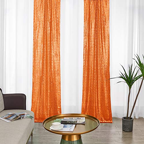 bestbuy 2×8FT-2PCS Orange Sequin Backdrop Curtains Panels, Photography Backdrop Glitter Curtains Fabric Background for Christmas Wedding Party Decor